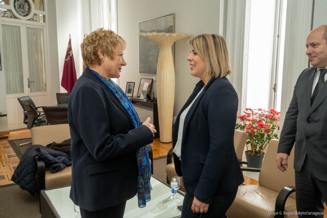 La alcaldesa, Noelia Arroyo, y el teniente de alcalde, Manuel Padín han recibido este martes 31 de enero a la cónsul general de Francia en España, Marie-Christine Lang, y al cónsul honorario de Francia en Murcia, Philippe Cazeaux. El encuentro ha tenido lugar en el Palacio Consistorial. Anteriormente los diplomáticos han visitado el Museo del Teatro Romano y el Foro Romano.