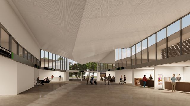 El nuevo edificio recoge el potencial de la luz natural del Mediterráneo, reforzando la sostenibilidad y el ahorro energético de una instalación que dispondrá de espacios para locales comerciales, venta de billetes, atención al cliente, aseos y zonas para usos ferroviarios.