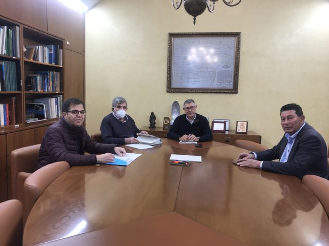 El presidente de la Confederación Hidrográfica del Segura, Mario Urrea, acompañado por el Comisario, Francisco Javier García, ha mantenido una reunión de trabajo con representantes de la Comunidad de Regantes (CR) de Cartagena, encabezada por su presidente, Manuel Martínez.