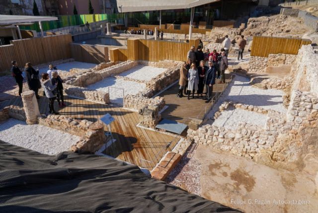 Delante del templo de Isis, Noelia Arroyo ha indicado: "Con estos trabajos hemos recuperado otra calle de la ciudad romana por la que podemos caminar 20 siglos después y una nueva Domus, otra casa del vecindario en la que se conserva un mosaico y que nos permite conocer mejor cómo era la vida en Carthago Nova".