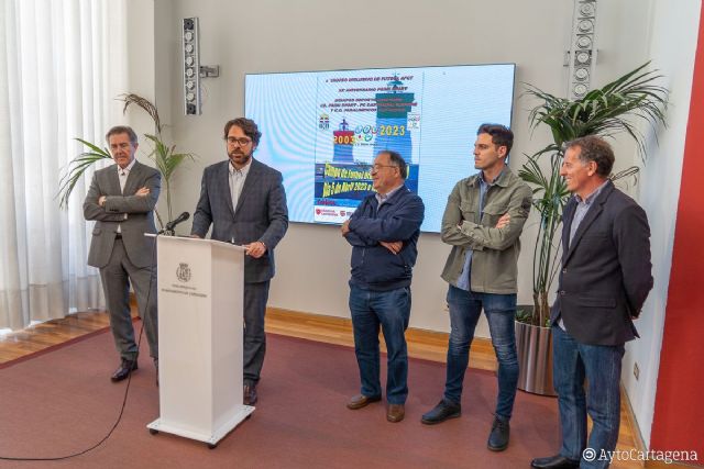 Han presentado el campeonato este martes, 28 de marzo, el concejal de Deportes, Álvaro Valdés, junto al presidente de Primi Sport, Pepe Moreno, presidente de la AFCT, Joaquín Martínez Victoria, el presidente de la Federación de Futbol de la Región de Murcia, José Miguel Monje, y el entrenador del FC Cartagena Genuine, Diego Sánchez.