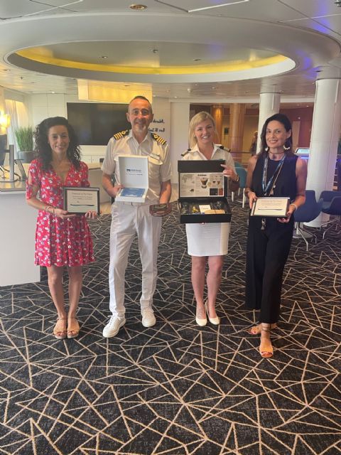 Con motivo de su primera escala, la responsable de Desarrollo de Negocio de la Autoridad Portuaria, Hortensia Sánchez, la responsable de Desarrollo de Negocio de la consignataria Agencia Marítima Blázquez, han dado la bienvenida al crucero y han participado en el tradicional intercambio de metopas con el capitán del buque. También, una comitiva de Cartagineses y Romanos ha dado la bienvenida a los pasajeros.