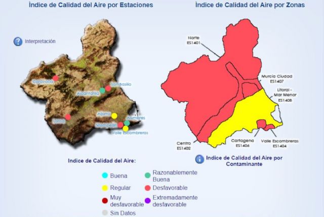 Durante la jornada se registró el Nivel 2 (correctivo) en la estación de medida de calidad del aire de La Aljorra, perteneciente a la zona de calidad del aire "Litoral-Mar Menor".