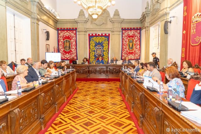 El primer pleno ordinario de esta legislatura en el Ayuntamiento de Cartagena se ha celebrado este jueves, 27 de julio, en el Palacio Consistorial, bajo la presidencia de la alcaldesa Noelia Arroyo. La sesión contó con numerosos vecinos y vecinas que quisieron seguirlo desde el salón de plenos. Al inicio se aprobaron las retribuciones del director general de Empleo Público e Interior, tras el dictamen de la comisión de Hacienda e Interior. En ella la edil del Gobierno Esperanza Nieto explicó a los grupos que este puesto lo ocupa un funcionario municipal que ya lo ejercía anteriormente y que su sueldo no se incrementa, siendo el mismo al que tiene derecho como trabajador del Ayuntamiento.