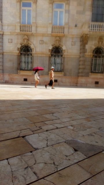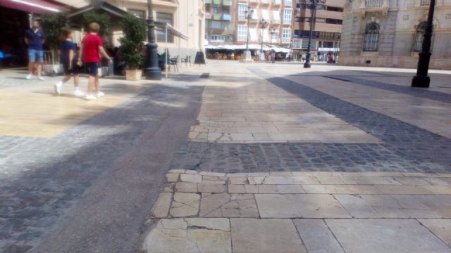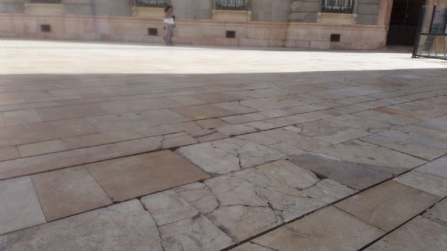 Imagen paupérrima para los visitantes. Los casi 5.000 cruceristas y resto de turistas, que visitaron ayer Cartagena, encontraron el enlosado de la Plaza José María Artés hecho un desastre junto al mismísimo Palacio Consistorial. Una circunstancia repetida todo el verano durante la consiguiente avalancha de viajeros en estas fechas. Además de su céntrica ubicación, el problema resulta más sangrante por el emplazamiento, en su lado sur, de uno de los mejores y más concurridos hoteles de la ciudad perteneciente a una prestigiosa cadena hotelera.