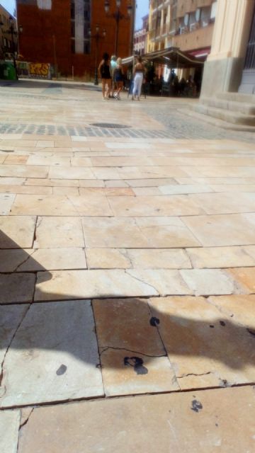 El Partido Cantonal de Cartagena solicita al equipo de Gobierno municipal que arregle el pavimento de esta emblemática plaza. Y, en cualquier caso si no hay previsión de remodelación a corto plazo, el nuevo servicio municipal de intervención rápida tiene aquí un trabajo de adecentamiento de máxima prioridad. "No es de recibo que la instantánea que los foráneos se llevan de la parte más bella de la ciudad sea aceras destrozadas. Así no podemos ser referentes del turismo nacional de ninguna manera", lamenta el secretario de organización del PCAN, Antonio Conesa.