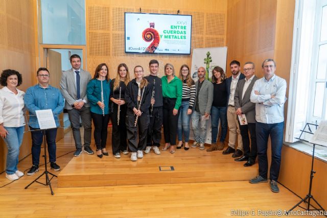 La presentación de la 26 edición de Entre Cuerdas y Metales, este martes, 31 de octubre, ha contado con la alcaldesa de Cartagena, Noelia Arroyo, la directora del Conservatorio, María José Castaño, el director de la Orquesta Sinfónica de Cartagena, Leonardo Martínez, el del Conservatorio de Lorca, Marcos de la Cruz, y el vicedirector del Conservatorio de Murcia, Luis Giménez. También han estado presentes el concejal de Juventud del Ayuntamiento de Cartagena, José Martínez, el director general de Formación Profesional de la Región de Murcia, Luis Quiñonero, y el autor del cartel del certamen, Ángel Ronda.