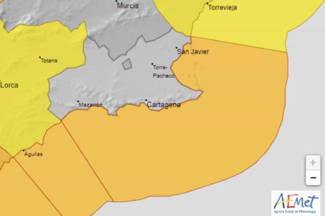 La Agencia Estatal de Meteorología (Aemet) informa sobre fenómenos costeros adversos de nivel naranja en el Campo de Cartagena y Mazarrón para este jueves, 2 de noviembre. El aviso comienza a las diez de la mañana y finaliza a las diez de la noche. Está previsto que haya viento del suroeste que alcance hasta los 70 kilómetros por hora (fuerza 7 a 8), con olas de 3 a 4 metros. La probabilidad es de entre el 40 y el 70 %.