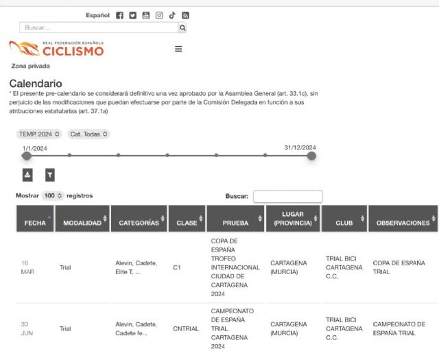 La Comisión Delegada de la RFEC aprobó en su última reunión la fecha y sede del Campeonato de España de Trial, siendo Cartagena la ciudad elegida y el Club Trial Bici Cartagena el club ciclista organizador de la prueba más importante del calendario nacional.