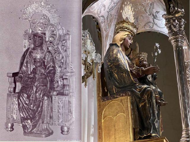 Ruiz Álvarez indica igualmente que, "nos llama bastante la atención que aunque nuestra Co-Patrona figura en el catálogo de las escasas Vírgenes negras que hay en la Península Ibérica, y como tal partió de Cartagena, regresó, sin informe de restauración, ni fotos de la intervención, policromada y con sus mejillas sonrosadas".