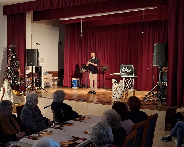 La fiesta empezó con la actuación del gran Mago ABEL, que por vez primera y de forma desinteresada, quiso sumarte a este encuentro festivo haciendo las delicias de los ancianos que no le dejaban marcharse.