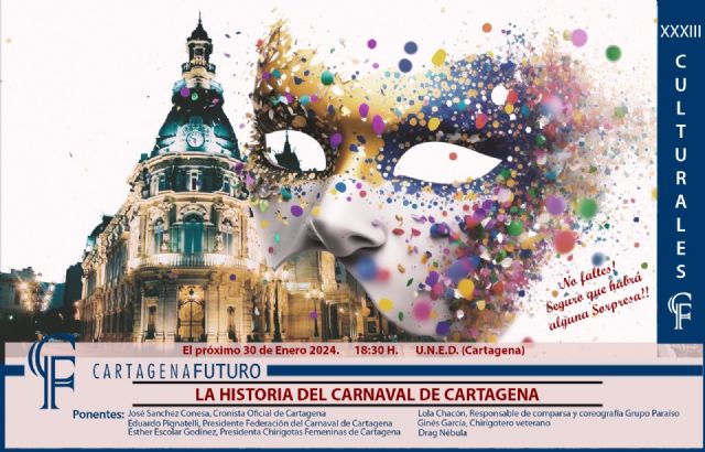 Como no podía ser de otra manera nuestro CULTURAL N° XXXIII tiene como tema LA HISTORIA DEL CARNAVAL DE CARTAGENA, nosotros los cartageneros debemos conocer nuestra historia para mejorar nuestro futuro.