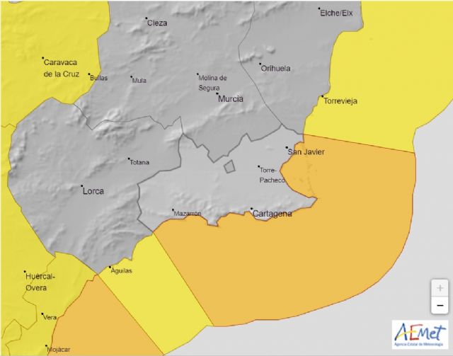 La Agencia Española de Meteorología (AEMET) ha emitido avisos amarillo y naranja en Cartagena por fenómenos costeros. El aviso estará activo en nivel amarillo desde las cuatro de la tarde de este sábado 2 de marzo, y aumentará a nivel naranja a partir de las 12 de la noche del domingo 3 de marzo, estando activos hasta las siete de la mañana.
