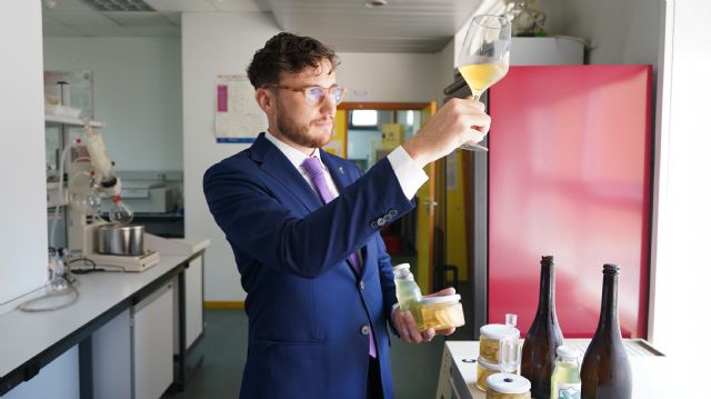 Las estrategias innovadoras de su tesis para revalorizar subproductos agrícolas han dado lugar, en el caso del melón, a bebidas de graduación alcohólica inferior a 12 grados, con o sin gas, “con excelentes cualidades visuales, olfativas y gustativas, con notas dulces y afrutadas”, describe el director de la tesis por parte de JimboFresh, Andrés Conesa Bueno, quien también se doctoró en la UPCT.