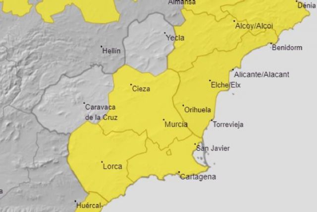 La Agencia Estatal de Meteorología (Aemet) emite un aviso amarillo para Cartagena y comarca por previsión de lluvias y tormentas este sábado, 21 de septiembre. El resto de la Región también está en aviso amarillo.