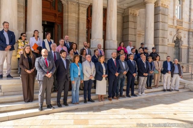 Siguiendo la convocatoria realizada a nivel nacional por la Federación Española de Municipios y Provincias, la alcaldesa de Cartagena, Noelia Arroyo, ha convocado al mediodía este miércoles, 30 de octubre, a todos los concejales de la Corporación, empleados municipales y ciudadanos a guardar un minuto de silencio este mediodía ante el Palacio Consistorial en el que también se han sumado diputados autonómicos, como muestra de solidaridad con las víctimas y afectados por las inundaciones registradas ayer en la Comunidad Valenciana y Albacete.