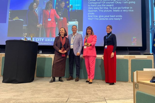 La ciudad de Cartagena es la tercera ciudad de la Unión Europea más accesible y la primera de España a criterio de la Comisión Europea que este viernes 29 de noviembre ha entregado en Bruselas los Premios Ciudad Accesible 2025. La concejala del Área de Política Social, Igualdad y Familia, Cristina Mora, acompañada del responsable municipal de Discapacidad y Dependencia, Enrique Bocos, ha recogido el galardón en un acto celebrado en la propia Comisión Europea.