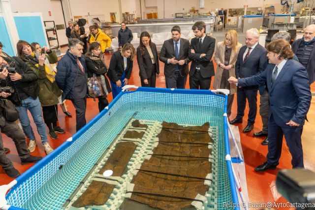 Arroyo, que ha recorrido las instalaciones junto al presidente de la Región, Fernando López Miras, y el ministro de Cultura, Ernest Urtasun, ha recordado que estos trabajos son “la continuidad de uno de los retos más importantes que desarrolló ya hace años el Museo Nacional de Arqueología Subacuática con Mazarrón 1, y también con la tecnología que se utilizó para recuperar el tesoro de la Fragata de Nuestra Señora de las Mercedes”.