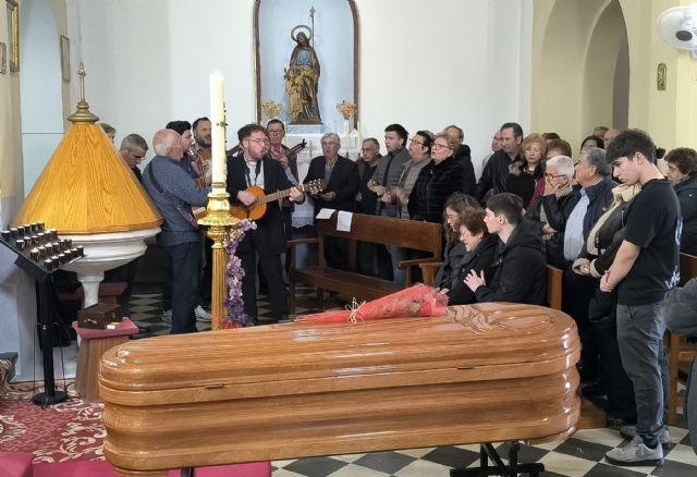 Más de 200 vecinos de toda la zona oeste del campo de Cartagena han despedido a Salvador 'El Moreno' con una Misa que ha estado acompañada por los Cantos de Pascua de temática religiosa de la cuadrilla de Tallante.