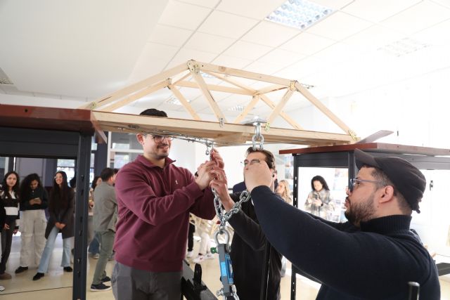 Favoritos por su experiencia, el equipo formado por estudiantes que ganaron el año pasado el I Concurso Nacional de Puentes volverá a representar a la UPCT tras ganar hoy la edición local con un prototipo de puente que ha aguantado más de 300 kilogramos de peso en la prueba de resistencia estructural.