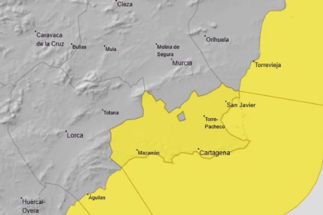 Están previstas lluvias intensas de hasta 15 litros por metro cuadrado en una hora. La probabilidad de este riesgo es de entre el 40 y el 70 por ciento. El aviso comprende también a los municipios de Torre Pacheco, La Unión, San Javier, San Pedro del Pinatar, Los Alcázares y Mazarrón.