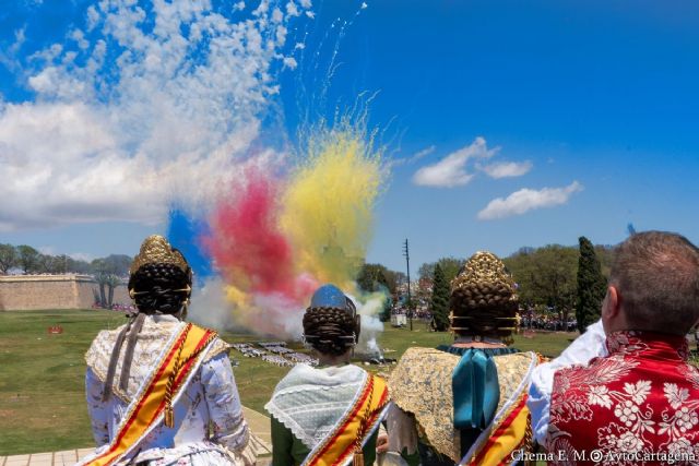 Moros y Cristianos valencianos, junto a las fiestas históricas de Cartagena, los Carthagineses y Romanos, no han querido perderse estas Fallas de Valencia en Cartagena. Juntos han protagonizado un desfile por el puerto de Cartagena y la muralla de Carlos III para ser testigos de este hito pirotécnico: La mascletá vivida en Cartagena en una de las más potentes jamás vista hasta la fecha.