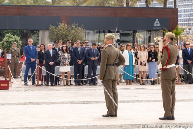 Cartagena conmemora con los artilleros el 2 de mayo. El primer teniente alcalde, Diego Salinas, junto al presidente de la Autoridad Portuaria, Pedro Pablo Hernández; el concejal delegado de Nuevas Tecnologías, Administración Electrónica y Transparencia, Diego Lorente, y ediles de la corporación municipal han asistido al acto militar celebrado en el puerto junto a la bandera nacional.