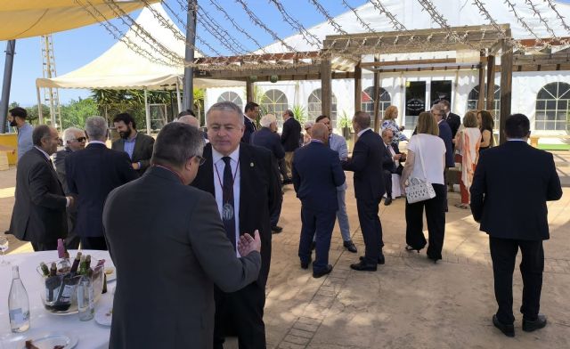 En el evento, celebrado en el Restaurante Finca Mayor, los asistentes fueron recibidos con un aperitivo consistente en jamón ibérico al corte acompañado con pan tostado y tomate, queso parmesano con almendras, brochetas de pollo con teriyaki y twister de langostino.