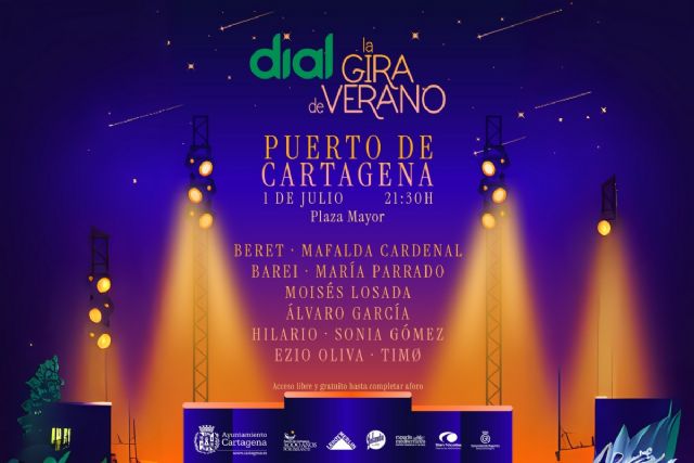 Sigue la música en Cartagena este martes con los conciertos de 'Dial, la gira del verano'. Beret, Mafalda Cardenal, Barei o María Parrado están entre los artistas que suben al escenario del puerto situado junto a Héroes de Cavite este 1 de julio. La entrada es libre y gratuita hasta completar aforo. Esta gira de la Cadena Dial llega a la ciudad con la colaboración del Ayuntamiento de Cartagena y el Puerto de Cartagena.