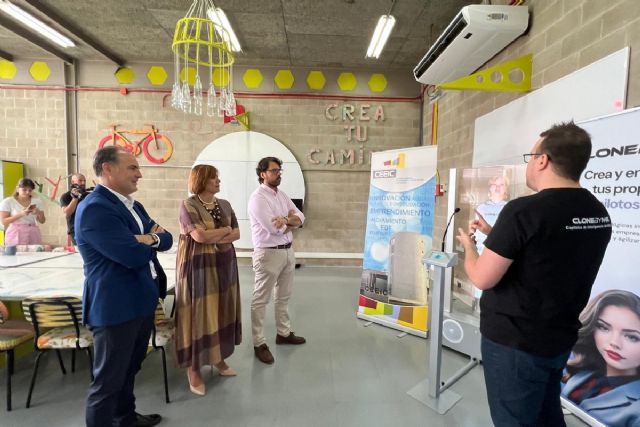 El concejal de Empresa, Álvaro Valdés, ha conocido este viernes, 25 de julio, a 'Chloe', un agente de atención al cliente multilingüe que puede interactuar cara a cara. Chloe ha sido desarrollada por la startup ubicada en el CEEIC de Cartagena, CloneByMe.