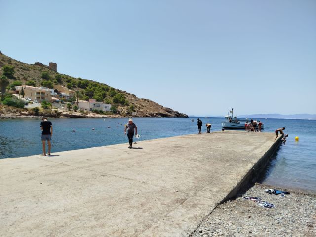 Una de las principales motivaciones de esta actuación pasaba por la regularización del fondeo de las embarcaciones. El nuevo muelle tendría bolardos para uso de los propietarios de barco previa concesión administrativa. Hace dos años, la Demarcación de Costas del Estado retiró un centenar de boyas de amarre del agua. Una decisión que sorprendió a los dueños de las embarcaciones que criticaron tanto la falta de aviso como la medida adoptada. Hasta 25 toneladas de pesos muertos de hormigón, elementos voluminosos de plástico, cadenas, cables de acero o cabos que estaban en el fondo marino salieron a la superficie en esta acción medioambiental. El lecho marino de La Azohía, colonizado parcialmente por posidonia oceánica, forma parte de la reserva de Cabo Tiñoso y colinda con espacios pertenecientes a la Red Natura 2000.