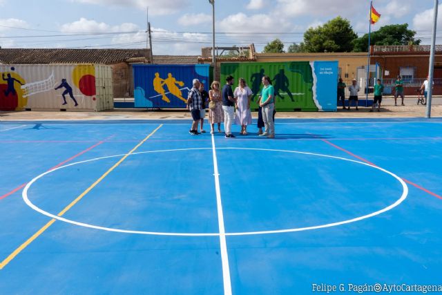 “Queremos que cada pista de Cartagena tenga un diseño estandarizado y reconocible, como parte de una Marca Cartagena unida al deporte, pero también que sean funcionales, resistentes y seguras frente a actos vandálicos”, ha indicado Arroyo, acompañada por el concejal de Deportes, José Martínez, la edil de Descentralización, Paqui Martínez, y el presidente de la Junta Vecinal de El Albujón, Ángel Nieto.