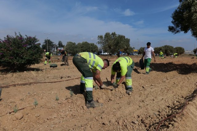 La renovación ha incluido la plantación de 8.000 unidades de lavanda, especialmente valorada por su belleza, aroma y adaptabilidad al entorno seco. Esta intervención se ha llevado a cabo respetando los 30 olivos existentes en la rotonda, así como dos ejemplares de buganvilla de bola, que se integran en el nuevo diseño paisajístico.