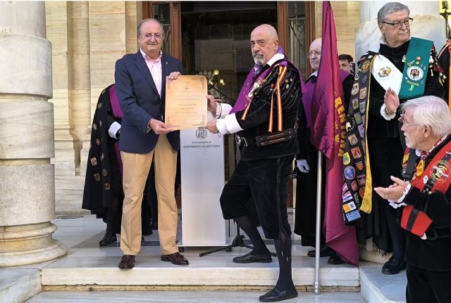 Seguidamente, se ha procedido a los nombramientos de ‘Gran Maestre de Tuna’ a Tomás Martínez Pagán y de ‘Madrina de Honor’ de la Cuarentuna de Cartagena a la alcaldesa, Noelia Arroyo. Para ello, Carrión les ha entregado a ambos los correspondientes pergaminos y les ha impuesto las becas.