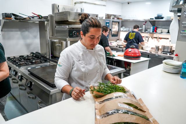 - La chef de Magoga, María Gómez, utilizando el hinojo marino cultivado con agua y nutrientes reciclados.