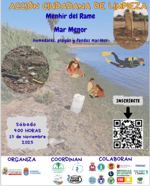 El próximo sábado 15 de noviembre el paraje natural del ‘Menhir del Rame’ de Bahía Bella será el escenario de una jornada ambiental sin precedentes mediante la realización de una macro limpieza-terrestre y subacuática en el Mar Menor, sus humedales, playas y fondos marinos.