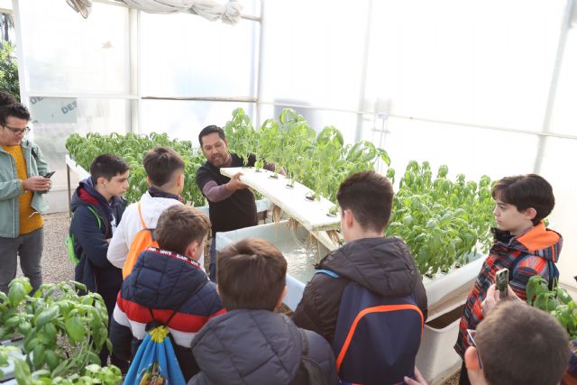 Setenta estudiantes de 4° de ESO del IES Ricardo Ortega de Fuente Álamo y del IES Galileo de Pozo Estrecho han descubierto esta mañana cómo la UPCT impulsa la sostenibilidad agroalimentaria a través de cuatro talleres realizados en la Estación Agroalimentaria Experimental en la primera jornada de los Itinerarios Agroalimentarios de la Escuela de Agrónomos.