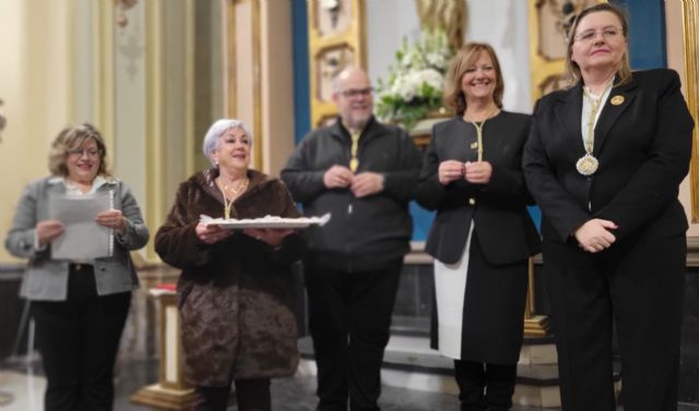 La Cofradía del Resucitado impuso las medallas a las hermanas de la Junta de Damas en un acto litúrgico celebrado en la capilla de la Iglesia de Santa María de Gracia. En el mismo el capellán, Don Jesús Gonzalo Conesa, leyó el Evangelio y las bendijo.