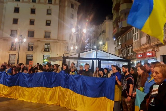 La Asociación GROMADA de ucranianos en Cartagena realizó este pasado sábado, 21 de febrero, una marcha a pie hasta la plaza del Ayuntamiento de Cartagena con motivo del cuarto aniversario de la guerra en Ucrania.