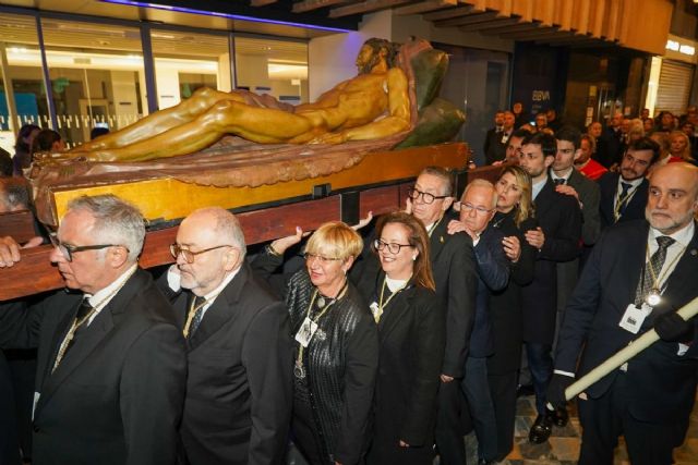 La alcaldesa, Noelia Arroyo, junto a fieles y cofrades, participó en el traslado organizado por la agrupación del Santo Sepulcro y Expolio de Jesús de la Cofradía Marraja, del que la talla de Capuz es titular, dentro de los actos programados para celebrar su centenario.