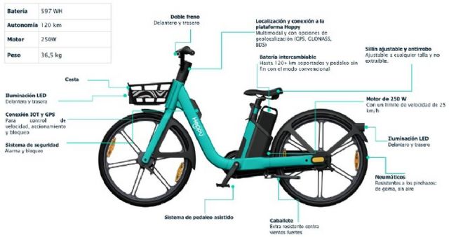 Las bicicletas, 50 más que las solicitadas en el pliego, estarán dotadas de motor eléctrico de 250W, con asistencia al pedaleo hasta 25 kilómetros por hora y una autonomía aproximada de 120 kilómetros. Además, incorporan GPS con transmisión constante de datos, luces LED delantera y trasera y neumáticos de goma sin aire, lo que mejora la seguridad y reduce el mantenimiento.