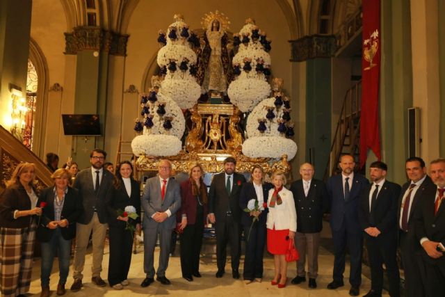 La alcaldesa de Cartagena, Noelia Arroyo, y el presidente de la Comunidad Autónoma, Fernando López Miras, han visitado esta mañana la iglesia de Santa María de Gracia durante los últimos preparativos de la Magna Procesión California.