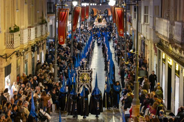 La Procesión de las Santas Mujeres partió desde el Rectorado de la Universidad Politécnica de Cartagena, sumándose al recorrido principal. Su incorporación puso de relieve la tradición y devoción femenina dentro de la Semana Santa.