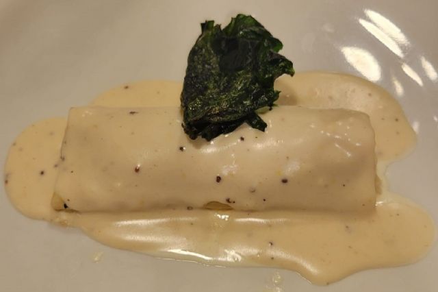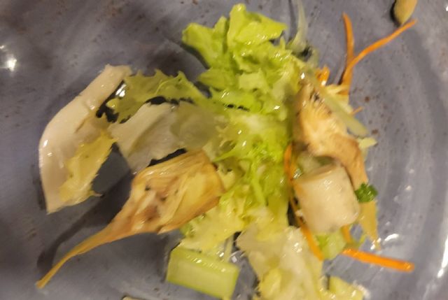 Comenzaron con unos entrantes de ensalada de escarola y apio con alcachofas encurtidos; crujientes de alcachofas con miel que estuvieron «de chuparse los dedos» y unas alcachofas con foie con una salsa de rebañar el plato con el sopeteo. Después pasaron a un canelón de pollo de corral con alcachofas que estuvo soberbio. El camarero Miguel Ángel les sorprendió con un cortante de sorbete de alcachofas. El segundo plato fue un guiso de alcachofas con ba Álamo y ajos tiernos, un plátano de sabor. Todo regado con el nuevo vino del Campo de Cartagena Señorío de la Cámara, cepa vieja de 14,5% en nariz muy aromática y, en boca, estructurado y vigoroso. El postre consistió en una Creme Brulee y unos asiáticos cantonales.