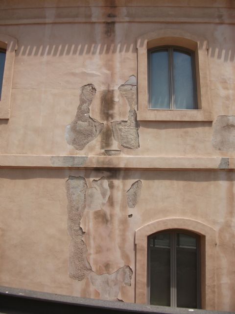 Los desconchones en el edificio universitario, junto con una plaza de toros sustentada por andamios, conforman el escaparate de la UPCT para los 15.000 cruceristas que visitan Cartagena cada año