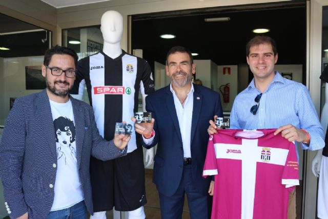 López y Segado han aprovechado la visita al Cartagonova para saludar al Alejandro Chavero, nuevo fichaje del club albinegro