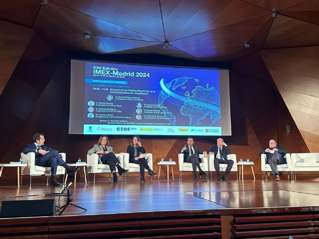 La alcaldesa Noelia Arroyo asiste a la inauguración de la muestra junto al artista, el presidente de la Fundación Cajamurcia, Carlos Egea, y el académico de la RAE Arturo Pérez-Reverte